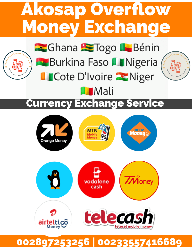 Akosap Overflow Enterprise is your trusted partner for currency exchange in Africa. With competitive rates and a commitment to professionalism, we ensure your satisfaction. Choose us for reliable service.